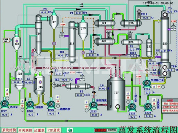 采用當今工業自動化主流控制之一的西門子PLC控制系統,由操作站、控制站和通信網絡組成的高效、穩定、先進的DCS控制系統。其中,控制站采用高速大容量的S7系列 PLC;操作站采用大屏液晶顯示器;監控軟件選用WINCC 7.0工控軟件;網絡采用PROFIBUS現場總線網絡。可以實現對溫度、壓力、液位、流量等參數檢測、控制以及數字化設定,參數范圍設定,可定時和不定時打印輸出,報警時間記錄。可對某設備或參數設定歷史曲線,跟蹤變化,多界面時臨界狀態彈出報警。并可根據客戶要求,作出更個性化界面。具有優秀的互動式人機對話窗口、操作平臺和成熟的GSM控制和通訊方案,可與手機及掌上電腦掛接.滿足無人值守控制場合。可設定電子信箱自動發送;操作方便簡單,安全可靠。能實現全部工藝設備聯動式自動化控制,全自動電機保護及故障報警監測,能有效的降低人為操作的干擾和損失程度,同時具備各種生產報表自動生成系統,從而降低能源消耗,提高生產率,增加安全系數,提高管理水平。