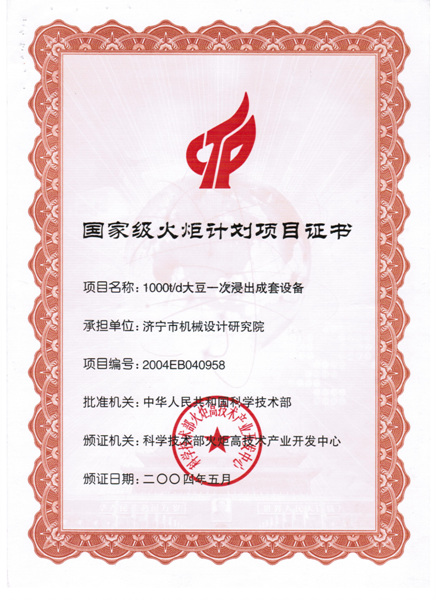 National Torch Program Certificate |