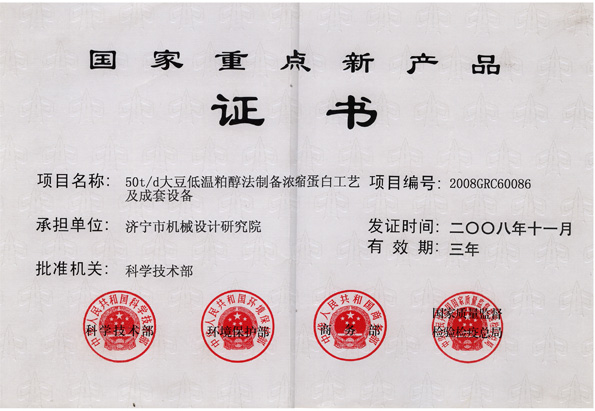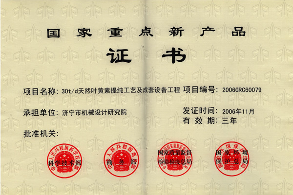 National Key New Product Certificate |