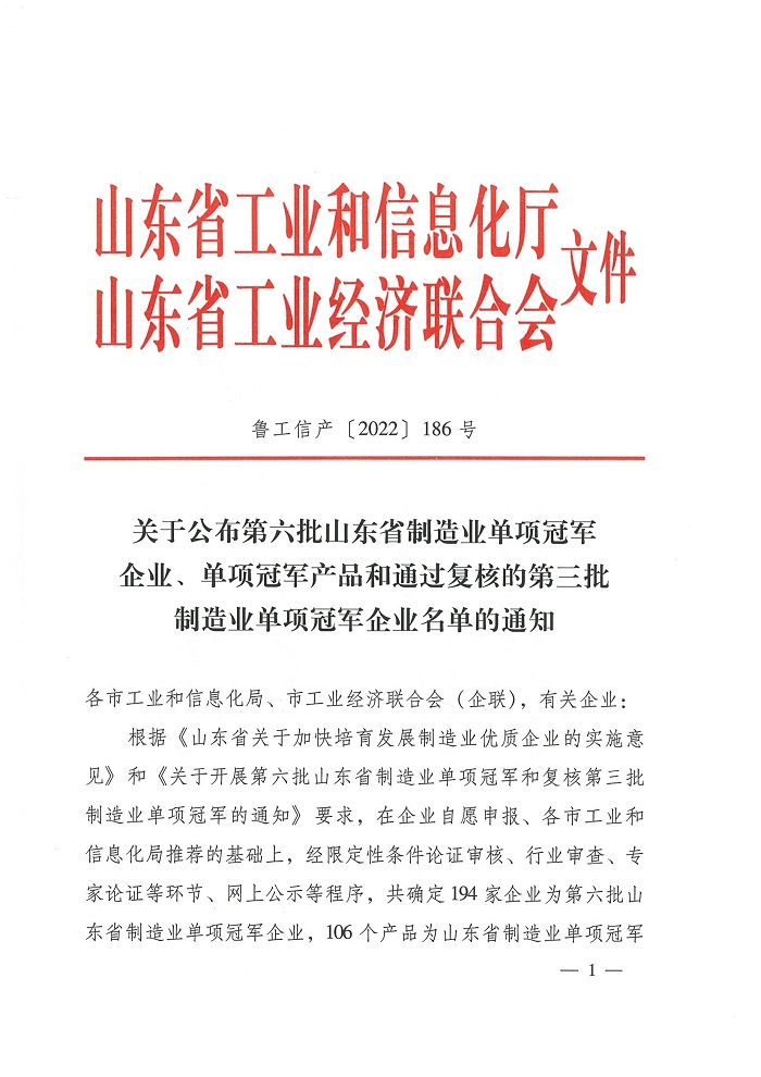 熱烈祝賀山東凱斯達榮獲山東省制造業單項冠軍企業榮譽稱號